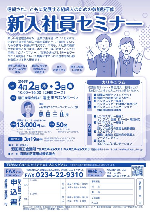 お知らせ 酒田商工会議所 > お知らせ > 2026年 【セミナー情報】新入社員セミナー開催のご案内 2026年01月19日 当会議所 【要注意】企業の資産を狙う詐欺メールに注意! 2026年01月14日 【要注意】企業の資産を狙う詐欺メールに注意!について下記をクリックしてください。 クリックでPDFを開きます 当会議所 【イベント情報】1/31(土)開催 酒田商工会議所主催ボウリング大会のご案内※締切1/16(金) 2026年01月09日 当会議所 【セミナー情報】3/5採用の悩みはAIを使って解決!採用・定着の秘策法セミナー14:00~16:00 2026年01月05日 当会議所 【セミナー情報】2/20 アンガーマネジメントセミナー14:00~16:00 2026年01月05日 当会議所 【セミナー情報】2/4山形県サイバーリスクセミナー13:30~15:30 2026年01月05日 当会議所 最近の投稿 【セミナー情報】新入社員セミナー開催のご案内 【要注意】企業の資産を狙う詐欺メールに注意! 【イベント情報】1/31(土)開催 酒田商工会議所主催ボウリング大会のご案内※締切1/16(金) 【セミナー情報】3/5採用の悩みはAIを使って解決!採用・定着の秘策法セミナー14:00~16:00 【セミナー情報】2/20 アンガーマネジメントセミナー14:00~16:00 【セミナー情報】2/4山形県サイバーリスクセミナー13:30~15:30 年末年始休業日のお知らせ 【お知らせ】酒田商工会議所会員のつどい「自衛隊第6音楽隊演奏会」ご案内※往復はがき1/16必着 【セミナー情報】1/16 生成AIを営業・販促現場で活かす実践体験セミナー13:30~※締切1/9 【セミナー情報】1/22 多様な人材活用による企業成長に向けて14:00~ カテゴリー 国税庁 厚生労働省 酒田市 山形県 経済産業省 当会議所 アーカイブ 2026 2025 2024 2023 Copyrightc Sakata Chamber of Commerce and Industry All Right Reserved.