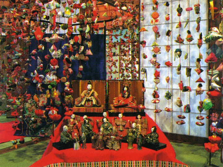 この稲取温泉に伝わる雛祭りには、古く江戸時代後期の頃より、娘の成長を願う母や祖母手作りの「つるし飾り」が飾られる風習がありました。子や孫の成長を願うやさしい暖かい心を込めた稲取独自の風習で、女の子の健やかな成長を願って手作りされ、意味や決まりごとを守りながら、この町独自の和裁細工として現在まで受け継がれて来ています。