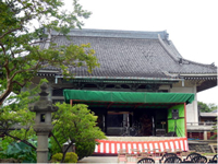 今の参道入り口の石段の辺りに、夕暮れ時に毎日のように豆腐を買いに来る、若く美しい人がいました。見かけない人だったので噂となり、後をつけてみると、女性は妙法寺の山門をくぐり、暗い境内に入って墓地で姿を消しました。そこは、最近亡くなった裕福な商家の若奥さんの墓でした。乳飲み子を残し亡くなったので、子供を思い豆腐を買いにきたのだろうと言われたという話です。 |