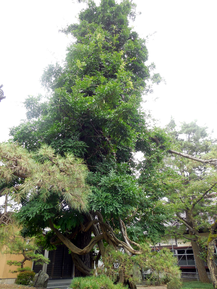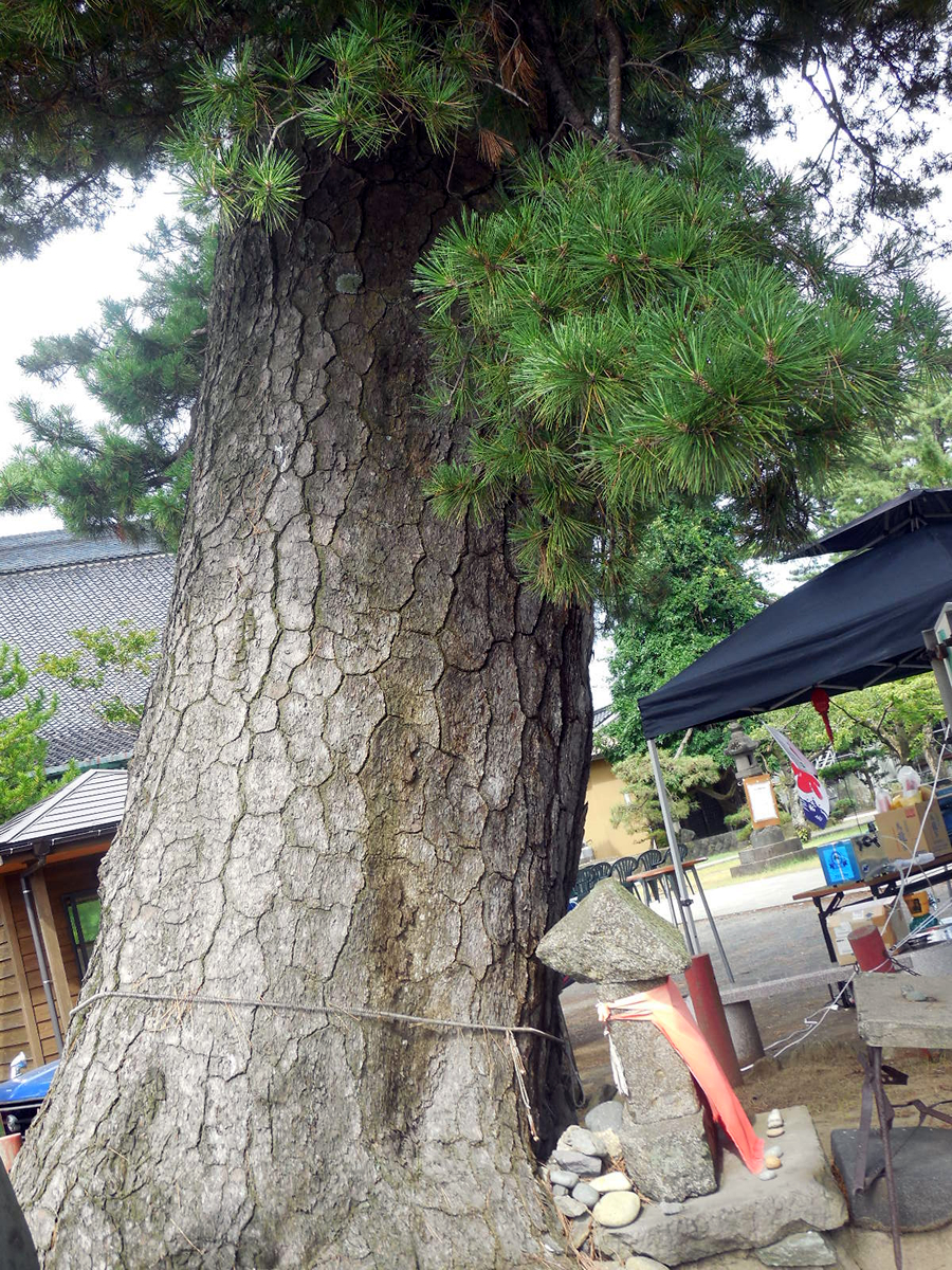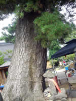 大変な巨木です。5月20日の山王祭りの頃、松に絡み咲く幻想的で見事な藤が見られます。これは本当に見応えがあり絶景です。藤に締め付けられて松が枯れないか心配しているところです。 |