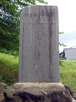 妙法寺公園にある庄内出身の旗本佐藤桃太郎、幕臣関口有之助、同天野豊三郎の石碑です。戊辰の役で、最後まで節操を貫き、佐幕派として処刑された若き魂を称え建立されました。胴体は妙法寺に、髪鬚碑は林昌寺、首は田川郡八ツ興屋の林高寺に葬られています。 |
