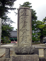 「夢なれや過こし年の月も花も」この句を詠んだ岩二は、美濃派の俳人でした。妙法寺付近に住み、清貧に耐え、その中でも陽気さを忘れない人だったといいます。日和山の文学碑の一つ「よそごとに時の鐘聞く月夜かな」の宝夏静は、妙法寺22世住職。松尾芭蕉が酒田逗留の際に宿泊した伊東不玉の墓碑、箏曲師範山木小磯や謡曲師池田大観の碑もあります。 |
