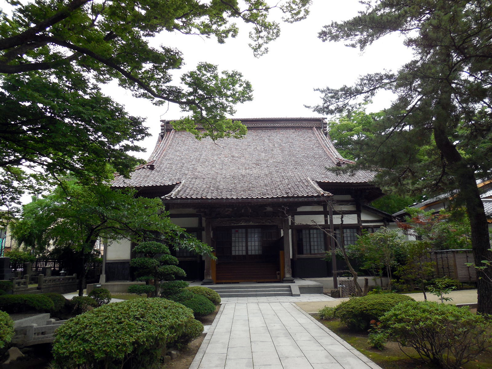 浄土宗のお寺です。開創は天文年間の470年位前。本堂は嘉永6年の(1853年)10月頃の160年程前、現在地に再建されました。ペリーが浦賀に来航した年です。2回火事に遭い、3度目の本堂です。最初は宮野浦にありました。酒田全体が北に移り、寺も移転しました。その後も何回か移転し、この地に落ち着きました。現住職で33代目です。 |