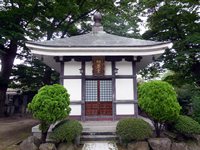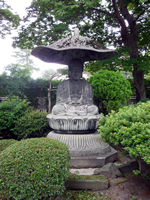 颯田本真(さった ほんしん)尼は、愛知県三河の尼様で、布施の行者と言われ、何度も酒田を訪れています。明治から大正にかけて、北海道から九州まで、震災や大火のあった154余りの町村、6万余戸に救済物資を届けて歩いています。酒田では、「三河の尼さん」と呼ばれ、多くの信者がいました。本間家、浄徳寺、民家で宿泊させています。颯田本真尼の勧めは、念仏信仰でした。昭和3年8月8日に亡くなり、遺骨が分骨されこの舎利塔に納められています。舎利塔は先々代住職が建てました。舎利塔は仏舎利といい、お釈迦様のお骨を納めたのが始まりです。仏舎利塔のことをストゥーパと言います。それに因んで、寺に舎利塔があるようです。 |
