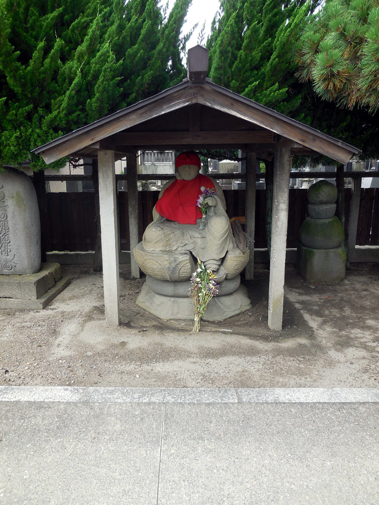 享保年間(1730年)終わり頃、門前に建立された半跏思惟像です。ほっぺに手を触れると、虫歯が治るそうです。 |