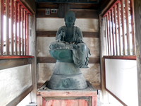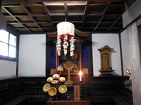 宝暦元年(1751)に泉流寺が火災に見舞われ、徳尼公の木像が焼失しました。本間家三代光丘は、明和元年に京都の仏師に頼み、新たな木像を作らせ、海路で酒田に運ばせました。木像の安置する廟堂も寛政2年(1790)寄進。徳尼公廟は酒田市指定有形民俗文化財。 |