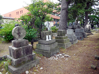 碑の文字に水を掛けて筆でなぞり、埃を流す墨流直し法会が昔は行われていました。天明5年、美濃派宗匠玄武坊が酒田に来られて、各務支考の鑑塔(墨直し塔)を建てたのが始まりです。酒田俳諧に名を残した酒田美濃派の宗匠達で、支考、百合仏、玄武仏、漸伸仏、黄梅仏、梅亭仏を供養しています。 |
