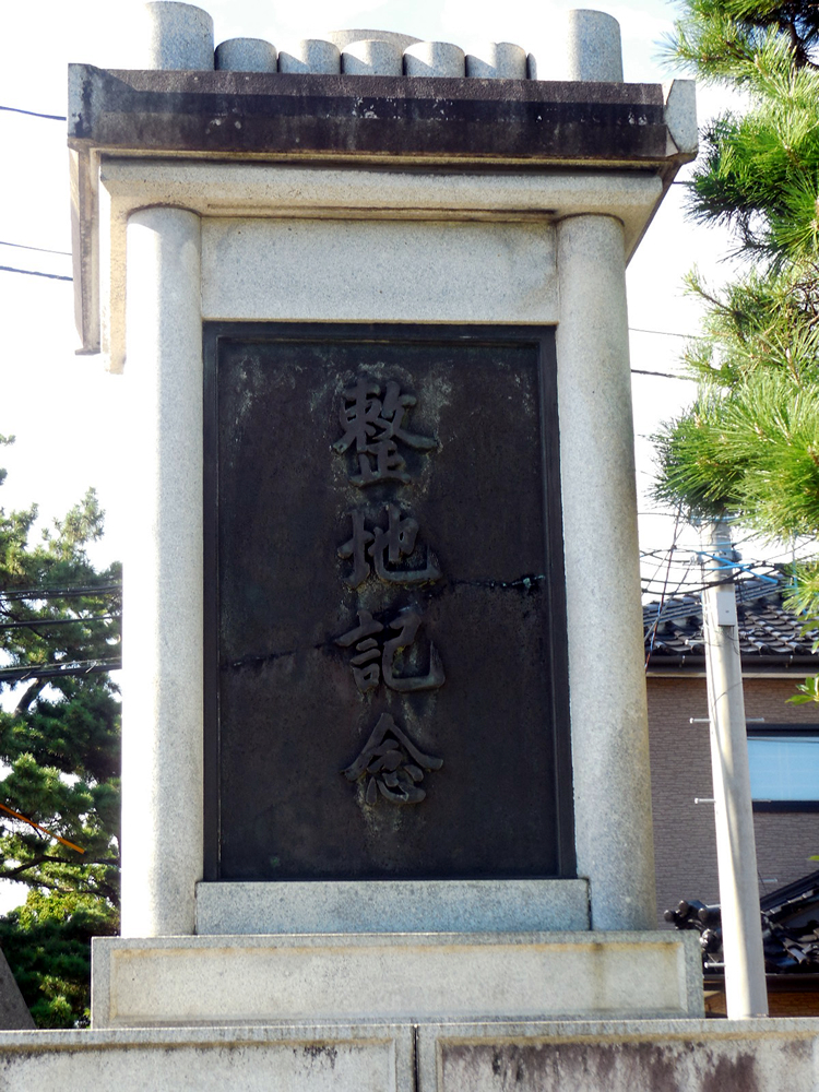 福徳稲荷神社の近くに、大きい記念碑があります。昭和7年に有終会前庭に建てられました。耕地整理組合は明治43年に2町13カ村による事業として施行され、本間家の当主3人が関わり中心となって20有余年に渡って行われ終了しました。この辺りには、日和橋の大堰が流れ、豪農といわれた人が沢山住んでいました。 |
