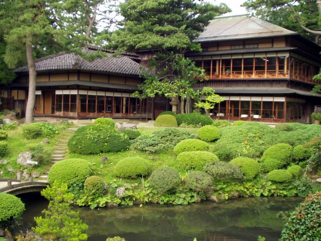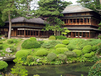文化10年(1813)本間家四代光道は、港湾労働者(丁持)冬期失業対策事業として藩主酒井侯の領内巡検宿泊施設を兼ねた、本間家の別荘を築造しました。鳥海山を借景とした回遊式庭園は「鶴舞園(かくぶえん)」、建物は「清遠閣(せいえんかく)」、京風の精緻な造りです。戦後、初の私設美術館となり、近世の古美術から現代芸術まで展示しています。 |