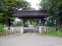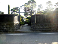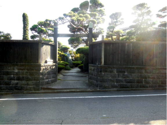 本間美術館裏の黒塀に情緒を感じながら歩くと、旧浜畑町に入ります。浜畑は日本海から吹いてくる強い風のために、一面の砂原だったそうです。そこで、平田郷の大庄屋尾形庄蔵は宝暦元年(1751)、藩に願い出て浜畑に移住してこの地方の植林を始めました。この辺りが一面砂原だったと想像してみてください。 |