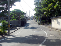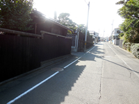 古い町並みが残り、黒塀ストリートがあります。黒塀の間、 左手の小路に入り、細道を進むと小路の十字路にでます。 |