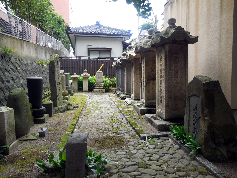 元禄8年(1695)に林昌寺の十三世曉誉上人が創始したお寺です。千日堂、浜の念仏堂と呼ばれ、念仏と鐘の音が絶えませんでした。それから千日堂前という町名ができました。震火災横死霊碑、念仏回向塔、戊辰戦争の工兵隊の墓碑があります。 |