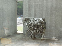 建築 この記念館の設計は、谷口吉生先生です。谷口先生は、日本の主要な美術館を設計し、海外においてもニューヨーク近代美出館改装を手掛けています。実は、この写真美術館の見所は、写真もさることながら、いろいろな方の作品が建物と一体になり融合している所です。 例えば土門拳を抽象的に表現した、イサムノグチの彫刻「土門さん」。「土門さん」が置かれている中庭は、彫刻家イサムノグチと建築家谷口吉生の融合で作られています。草月流の三代目の家元であり、生け花の概念を超えオブジェや庭を発表している勅使河原宏さんのお庭や、日本グラフィックデザイン第一人者である亀倉優策さんのデザインした銘板など、随所にある各界一流人の作品が、この建物と融合しています。こういう形になっているのは、土門拳と仲が良かった方や、その息子さん達が、土門拳の為に協力して下さったからです。この美術館は、写真と共に、土門拳を愛する人達の心で作られた建物です。その空間も充分に楽しむことが出来ます。 設計を依頼された谷口生先生は、当初、土門拳の作品を建物で表現しようと考え、沢山の写真集を見ました。しかし、土門拳の強烈な個性を知り、建物で土門拳の作品を現すのではなく、公園にマッチしたシンプルで自然なものにしようと考え直しました。石や壁などの素材、地の美しさに、大変こだわって設計した建物です。美しいままで、現在に到っています。この建物は、建築界では有名な吉田五十八賞、 芸術院賞、25年賞を受賞しています。 |