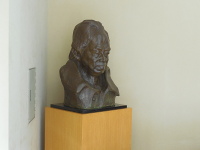 ブロンズ像 「はっこうさん」と呼ばれる有名な彫刻家の高田博厚(ひろあつ)さんが作った土門拳のブロンズ像があります。「土門拳に似てないわ。ベート-ベンみたいね。」と、土門拳の奥様がおっしゃったそうですが、似せることより、イメージで作られたようです。 | |||