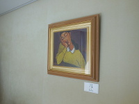 「Y嬢」 この油絵は、土門拳が描きました。土門拳は絵や書の上手な少年で、中学の頃は画家になる夢を持っていました。しかし、20歳頃に画家の夢を諦めています。この「Y嬢」は、写真家として有名になってきた昭和25年頃の作品です。数人の仲間が銀座で個展を開くということで、土門拳も誘われ描きました。その経過を見ていた人は、服の色が赤だったり緑だったり、何回も削って塗り直していたそうです。モジリアーニ風なので、ドモジリアーニと言われているそうです。土門拳は、生涯で50歳60歳70歳と3回倒れています。60歳で倒れた後、右半身不随の車椅子となりました。しかしそれからも絵や書を書きました。左手で書いた力強い書が残っています。 | |||