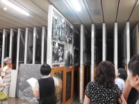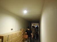 第一収蔵庫と第二収蔵庫 一年中、夜間も温度20度、湿度50%に保たれ、約八千点余りの作品が納められています。土門拳の原版は約七万点と言われ、プリントされた作品は約五千六百点あります。それから土門拳以外の作品が約二千四百点保管されています。 開館した時、第一収納庫だけでしたが、作品が増え、もう一つ奥に第二収納庫を増築をしました。増築した場所に継いだ線があります。この建物は、ここまでしかありませんでした。増築部分は、外観を変えず、飯森山の下を掘って建てました。その後、土を戻し、外観を変えずに増築は完了しました。 |