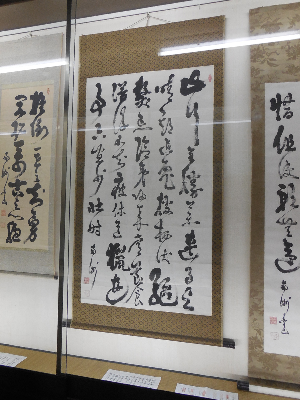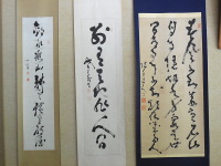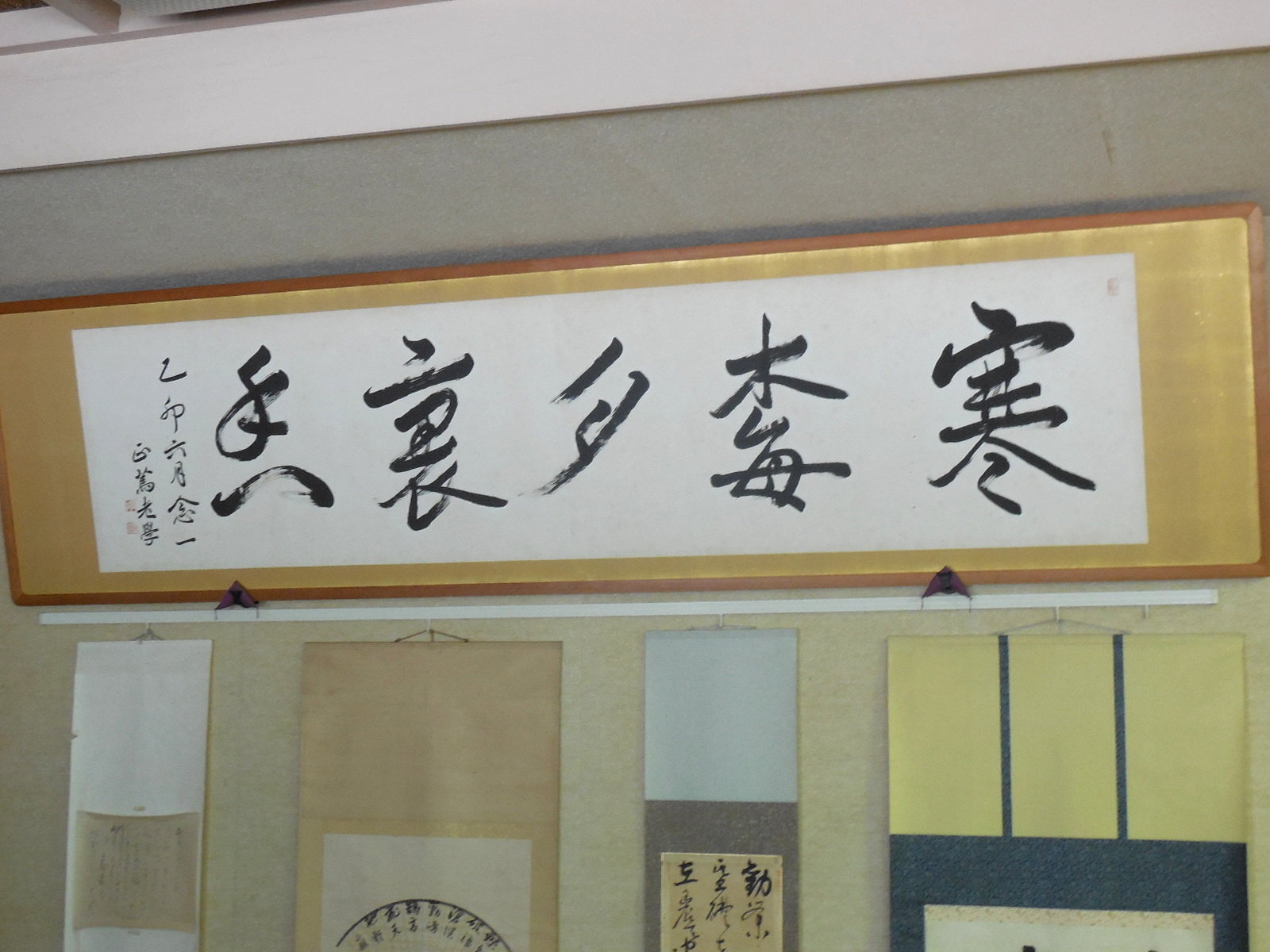 会館の成り立ち この会館は、勉強をする場所です。毎月第二土曜日、人間学講座をしています。会員の皆さんには葉書で御案内し、コミュニティーしんぶんでもお知らせします。参加は無料ですので、ぜひ、ご参加ください。午後2時から2時間、1時間は論語、残り1時間は我々の社会生活に役立つことを取り上げています。ここには、掛け軸が一千幅以上あります。今月は、幕末の三舟、右が高橋泥舟,中央が山岡鉄舟、左が勝海舟です。毎月掛け替えています。安岡正篤氏が書いた「寒梅月裏香」の書があります。寒梅は寒い冬に耐え、春になれば花を咲かせ匂いを放ち、黙っていても月の裏まで寒梅の香りが届きます。人も努力をすれば、いつかその努力は人の知るところとなりますという意味だそうです。 | |||||