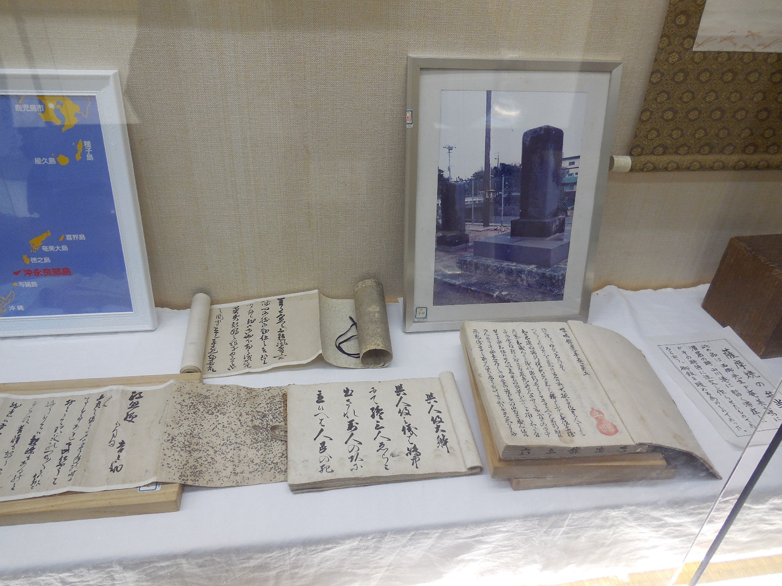 牢屋生活 西郷先生は奄美大島、徳之島、沖永良部島の三つの島に流されました。その時の牢屋生活の様子を展示しています。当時の島津のお殿様が「牢屋の中で死んでくれたらありがたい」と言うほど過酷な環境にされました。牢屋は海辺に建てられ、障子もガラスもなく、台風が来ると波しぶきが直接かかりました。トイレもなく衝立で仕切ってはいますが、その排泄物に虫の大群が押し寄せました。悪い衛生状態に加え、食べる物はこの薩摩白焼きの茶碗で一日に一回頂き、それを朝、昼、夜の三回に分けて食べ、おかずはありませんでした。畳四枚分で運動も出来ず、座禅を組んでいました。体が弱り痩せていきました。 展示されている「傳習録」は、当時牢屋の中で読まれた書物です。牢屋には二人の番兵がいて、その一人が土持政照でした。当時、土持政照は23歳位、西郷先生が36歳位でした。土持政照は牢屋に入っている人は立派な人だが、ここのままでは死んでしまうと感じていました。番兵と言えども役人ですので、両親や上司の許可を得て、島の古屋を買い取り、その中に牢屋を作り座敷牢の形にし、外トイレも作りました。海辺の牢屋はすぐに壊し、新しい牢が出来るまで、自分の家に住ませました。こうして西郷先生の命を救いました。土持政照は西郷先生の命の恩人です。西郷先生は牢屋の中で、土持はいずれは島をあげての偉い人になるに違いないと考えました。その時の為に「与人役大躰」を書きました。与人役とは村長や町長のことで、いずれ土持政照がそういう役に就くだろうと、その心得を牢屋の中で書き与えたのです。「間切横目大躰」という刑務官としての心得も書いています。島津斉彬公から学べと頂いた嚶鳴館遺草(おうめいかんいそう)も、牢屋の中で書き写し土持政照に与えました。上の部分は西郷先生が書き、下の部分は沖永良部島で書や漢詩の先生だった川口雪篷(かわぐち せっぽう)先生が書きました。川口雪篷先生は、西郷先生が明治10年で亡くなった後も、死ぬまで西郷家の為に尽くされました。鹿児島の南洲神社にある西郷隆盛の墓の書は、川口先生が書いたものです。 牢屋の中で使われた食器には、特徴がありました。西郷先生は、一日一回茶碗に盛られたご飯を三回に分けて食べました。南国でも冷や飯になってしまうので、茶碗の上の方からお湯をかけてご飯を温めました。その為、茶碗の下の方には流れるように穴が開いています。牢屋の中には火鉢だけはあったので、お湯を沸かしたり、酒を燗して飲みました。 牢屋の中で、釣りで使うルアーを作りました。針をシッポの方につけ、開いたところに重しをつけました。このルアーではイカがよく釣れました。漁師に頼まれ貸すとルアーを返さず、イカを持ってきたので、西郷先生は牢屋の中でイカを釣ったと言われました。この材料は、南国の匂いのする珍しい木です。糸は西郷先生が撚ったものでシュロ縄です。 |