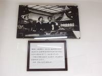 53歳で全盲になる前に、京都、大阪等を見て歩いた記憶から、縮尺した物を設計して作品を作りました。3ヶ月間で作り上げた、三重の塔が一番お気に入りの作品でした。菊の紋は、金太郎飴の作り方を応用しています。細工した竹を長く作って、輪切りにして使いました。宮大工の反り具合は法則があって、普通の大工ではわからないそうです。宇治の平等院鳳凰堂は、見たことがありませんでした。口伝えで作ってみたら、寸法がまちまちで失敗に終わりました。そこで、一級建築士の方から一週間から二週間位通って頂いて、頭の中に縮尺したものを作り上げて、昭和39年から昭和41年の1年8ヶ月かけて作りました。材料費だけで9万5千円位、現在のお金で120万円位かかりました。銀閣寺は中の方は畳が敷いてあり、障子もあります。開け閉めできる一軒の家と同じ仕組みでできています。京都に行かなくても、20分位で京都見物できると言われました。金閣寺は焼失する前のものです。現在の物とは違っているようです。 | ||||