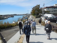酒田港へ向かいます。1492年に現在の宮野浦から移転し、約521年程経ちました。酒田港は最上川の舟運と北前船の西廻り航路の寄港地として栄えた港でした。今、歩いている場所は埋め立て地です。大正8年、酒田築港を最上川改修工事に付帯して10年計画で着工しました。平成24年の酒田港入港船舶は3,057隻です。全国に103ある事業港湾のうち、酒田港は昭和4年に指定された、山形県唯一の事業港湾です。平成4年に「東方水上シルクロード」が開設されています。 | |||||