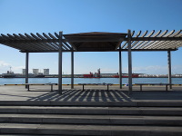 平成15年にオープンし、昨年度は約50万人が訪れています。この場所は、「みなとオアシス」として整備され、車300台が駐車できます。さかた海鮮市場、みなと市場、海洋センター、船場町緑地、飛島航路などを利用する方々でにぎわっています。ウッドデッキのスペースでは、潮風を感じながら休憩したり、夕陽を見たりできます。 | |||||