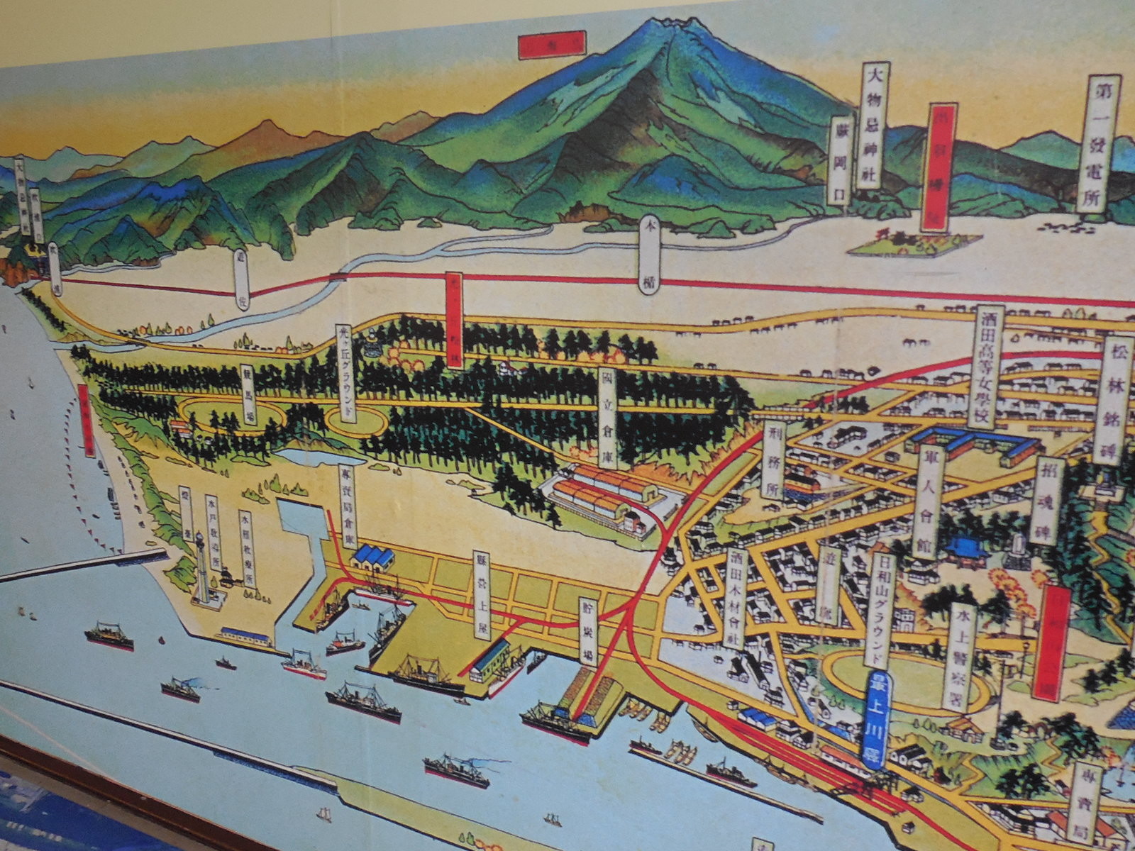 歴史部門 写真で見る酒田湊の今昔、海に関係ある古文書や古絵図などを展示しています。 | |||