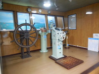 展示品 館内には子供が楽しんで港に親しみ、学習できる設備が揃っています。操舵室で船を体感し、スクリーンではクイズをしながら自然に学習できます。 | |||