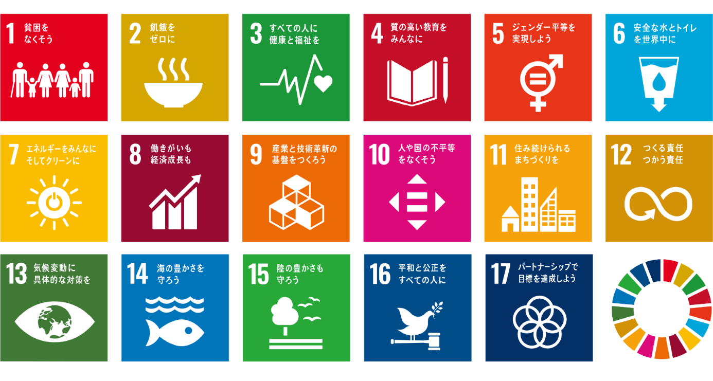 SDGs(エス・ディー・ジーズ)とは「Sustainable Development Goals(持続可能な開発⽬標)」の略称です。